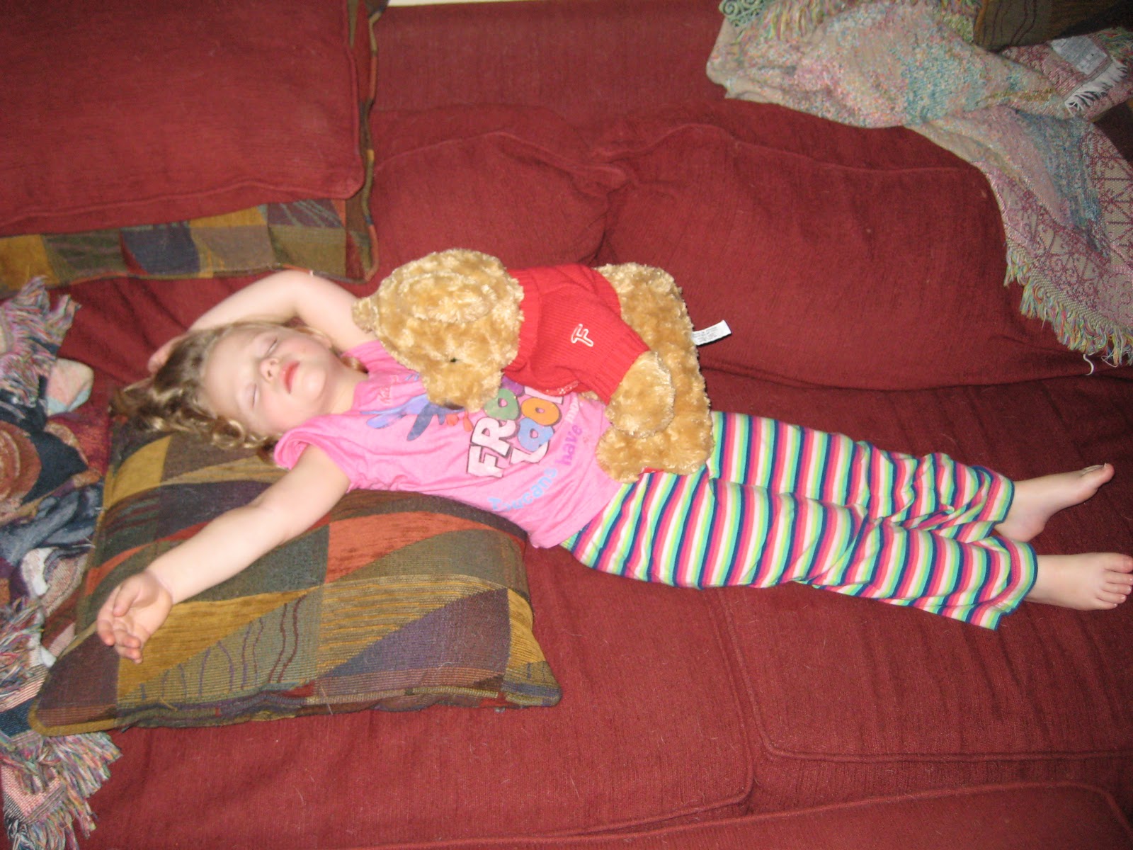 About 45 minutes after Bryan went upstairs to put her to bed, I tiptoed up there to wake him up. I guess he thought he should lead by example? When I opened the door, both daddy and daughter were asleep, side-by-side on the floor. Holding hands.